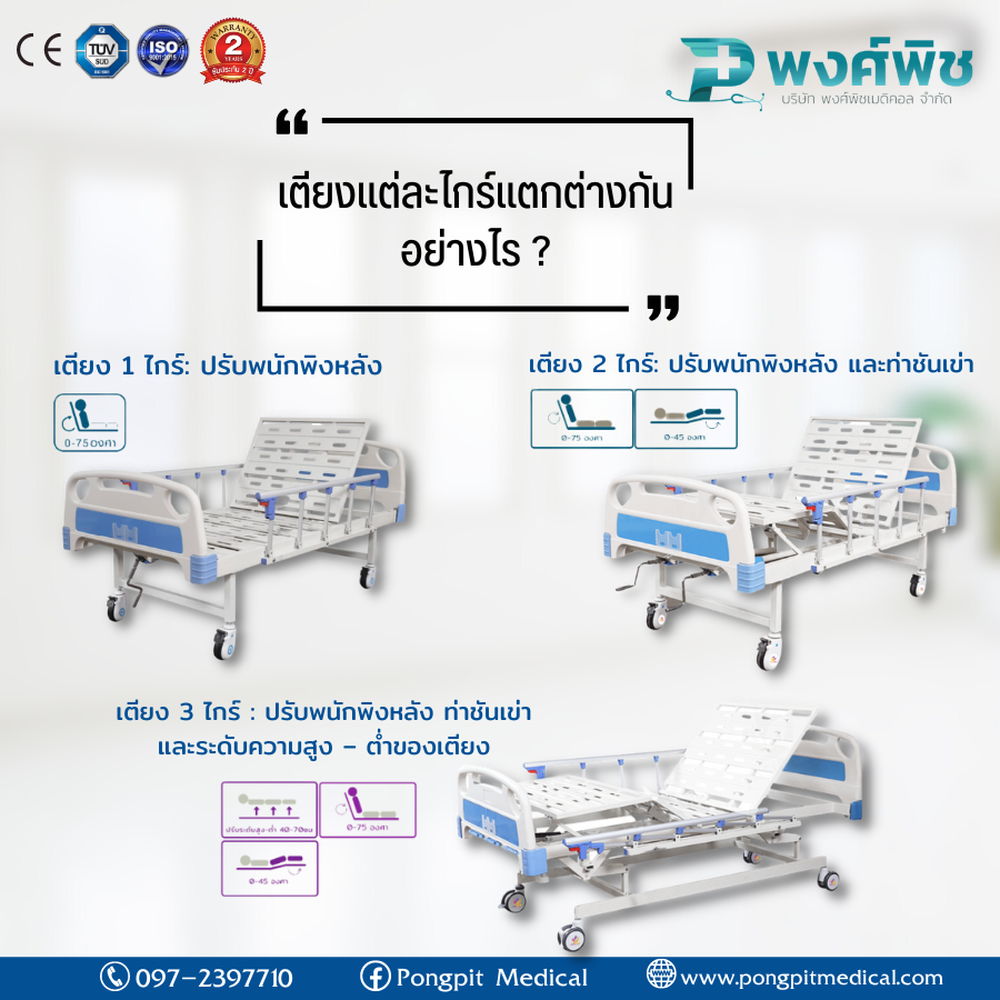 เตียง 3 ไกร์ : ปรับพนักพิงหลัง ท่าชันเข่า และระดับความสูง – ต่ำของเตียง