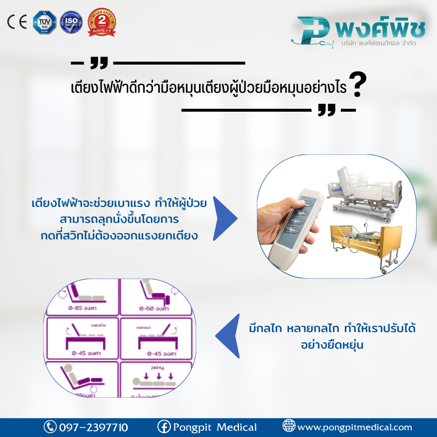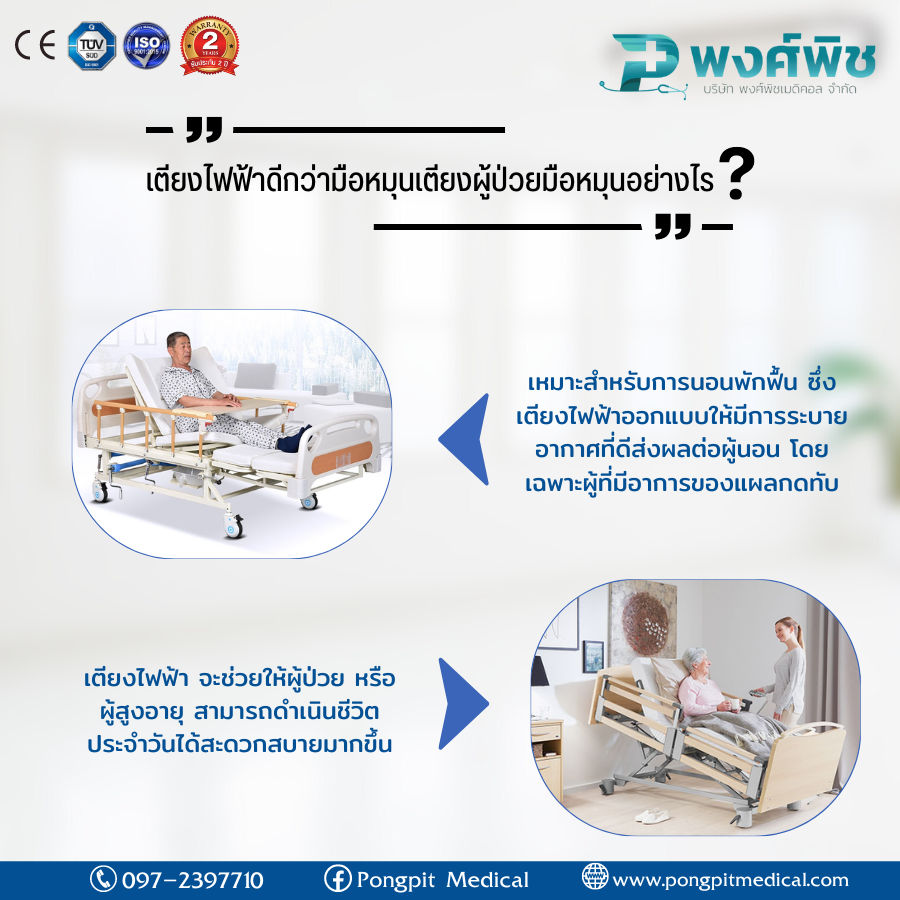 เตียงไฟฟ้าดีกว่ามือหมุนเตียงผู้ป่วยมือหมุนอย่างไร