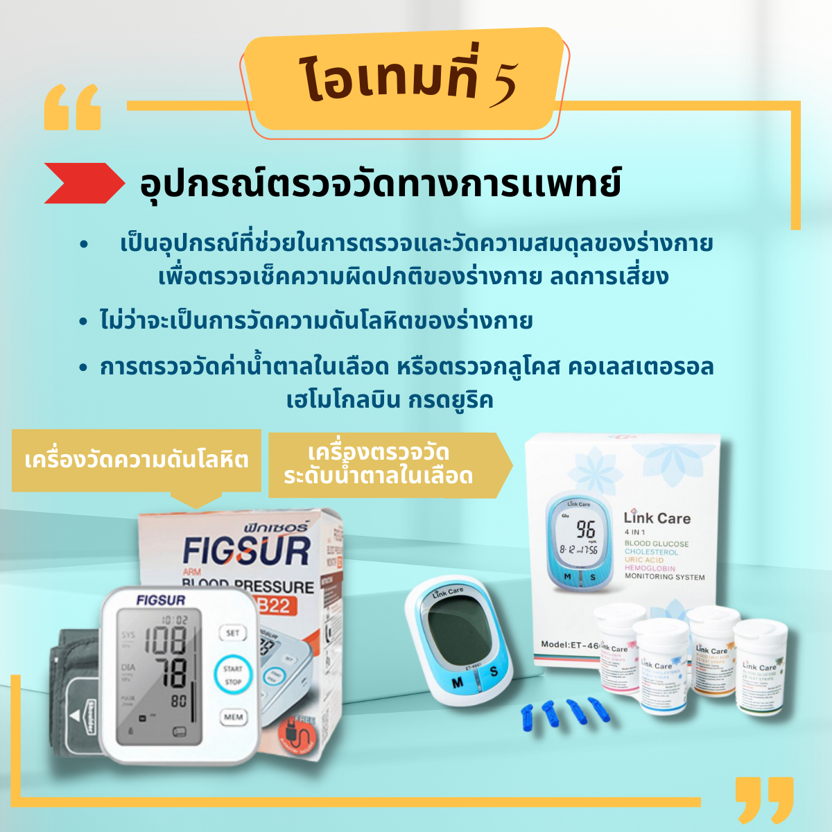 เป็นอุปกรณ์ที่ช่วยในการตรวจและวัดความสมดุลของร่างกาย ไม่ว่าจะเป็นการวัดความดันโลหิตของร่างกาย การตรวจวัดค่าน้ำตาลในเลือด หรือตรวจกลูโคส คอเลสเตอรอล เฮโมโกลบิน กรดยูริค เพื่อตรวจเช็คความผิดปกติของร่างกาย ลดการเสี่ยง ช่วยในการควบคุมอาหาร หรือการกิน เป็นการดูแลสุภาพที่ดี อุปกรณ์ตรวจวัดทางการแพทย์นี้ใช้ได้กับคนป่วย รวมไปถึงคนที่มีร่างกายปกติ