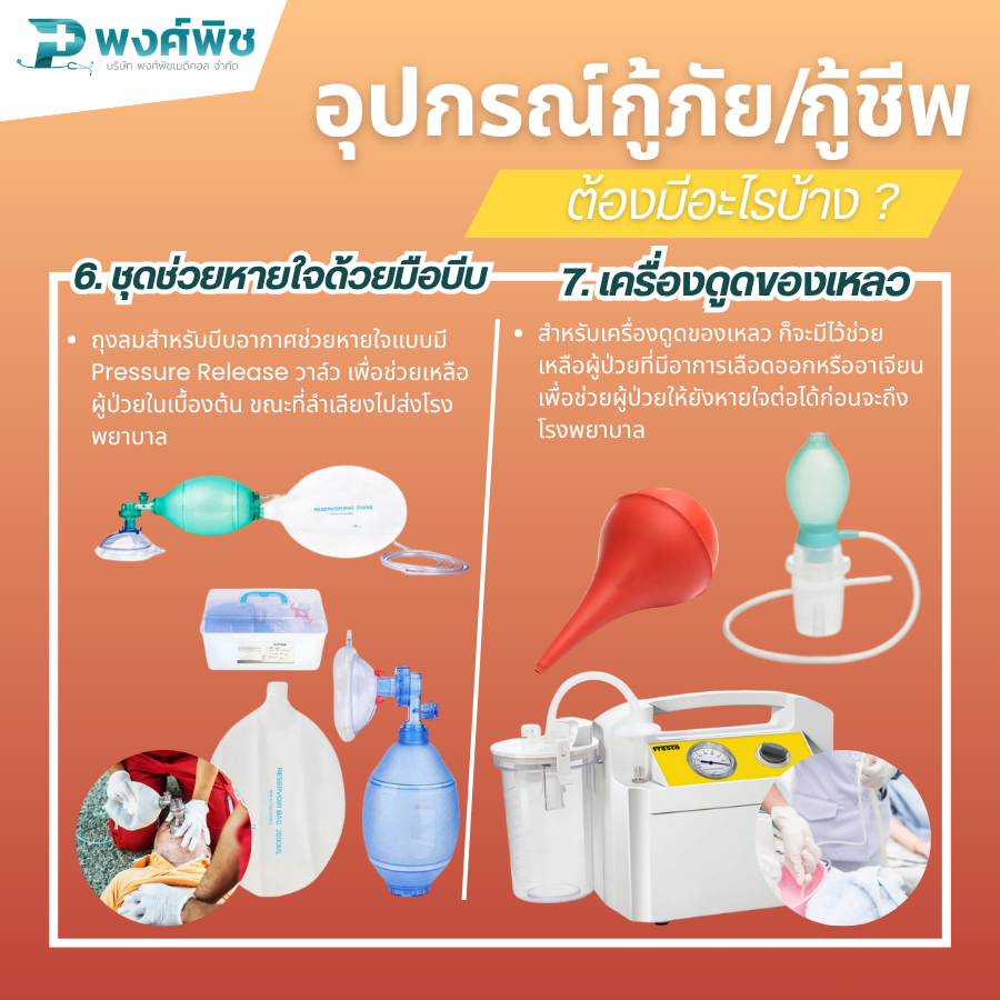 สำหรับอุปกรณ์นี้ ก็คือ ถุงลมสำหรับบีบอากาศช่วยหายใจแบบมี Pressure Release วาล์ว เพื่อช่วยเหลือผู้ป่วยในเบื้องต้น ขณะที่ลำเลียงไปส่งโรงพยาบาล