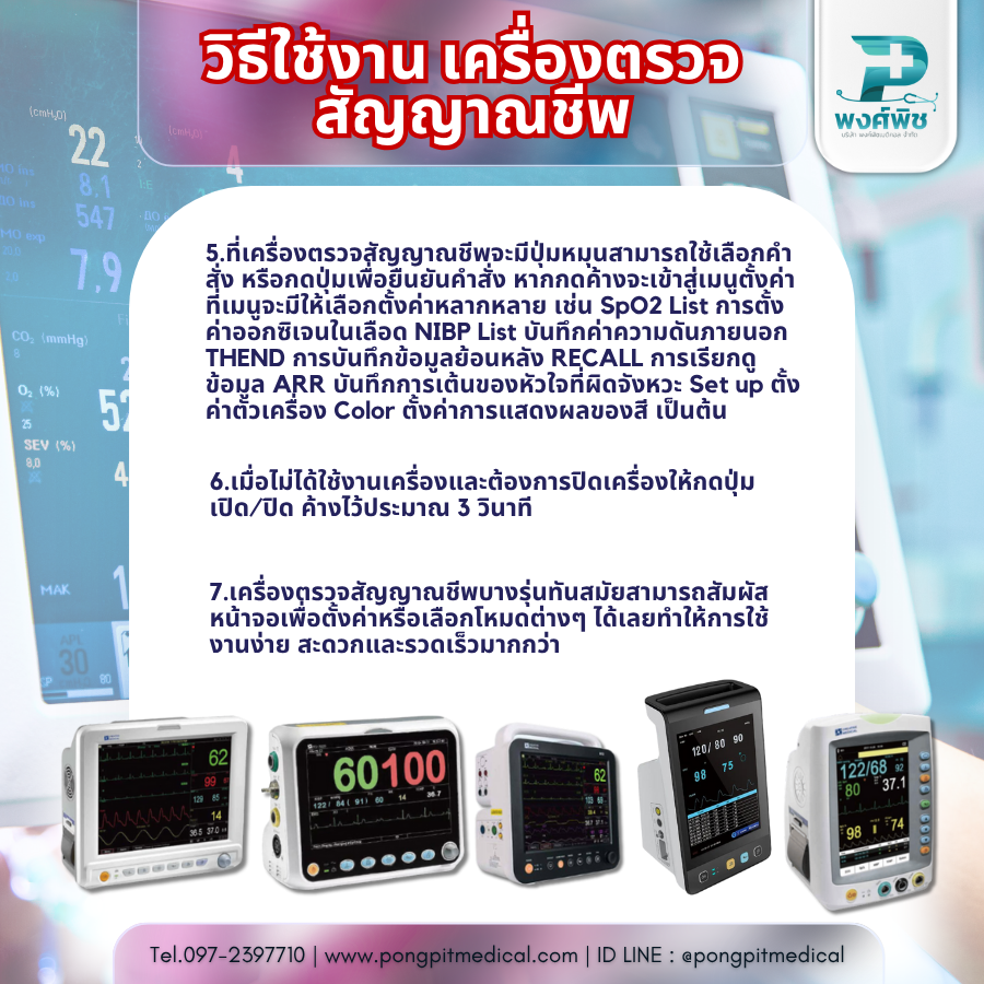 - เครื่องตรวจสัญญาณชีพบางรุ่นทันสมัยสามารถสัมผัสหน้าจอเพื่อตั้งค่าหรือเลือกโหมดต่างๆ ได้เลยทำให้การใช้งานง่าย สะดวกและรวดเร็วมากกว่า