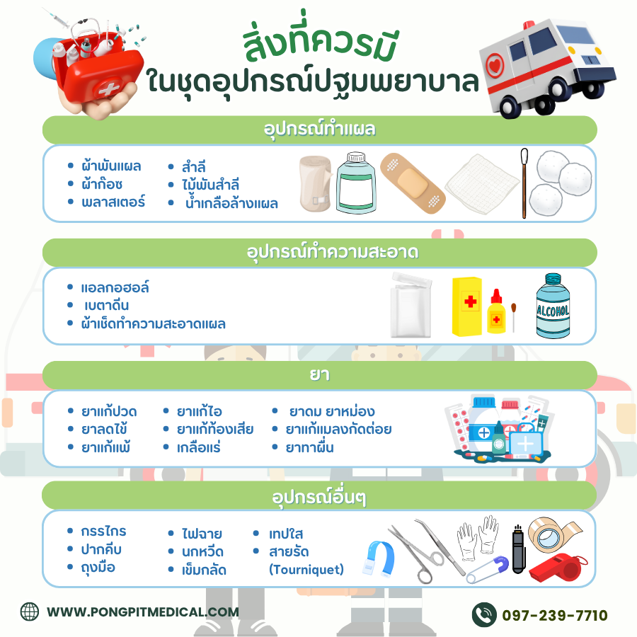 สิ่งที่ควรมีในชุดอุปกรณ์ปฐมพยาบาล: