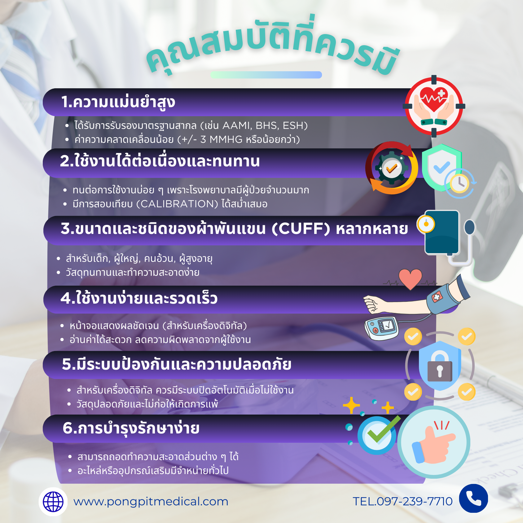 • ได้รับการรับรองมาตรฐานสากล (เช่น AAMI, BHS, ESH)