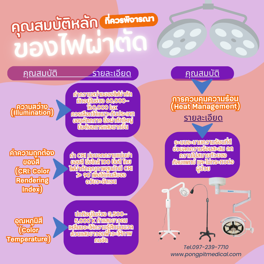 2. คุณสมบัติหลักของไฟผ่าตัดที่ควรพิจารณา