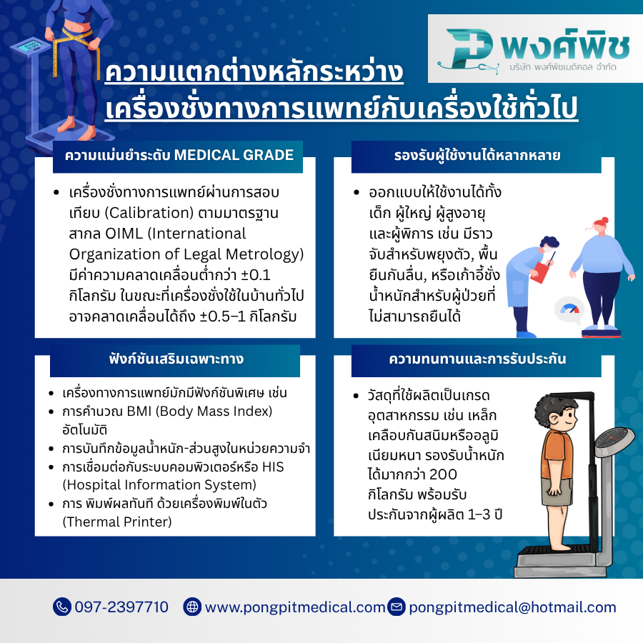 2. ความแตกต่างหลักระหว่างเครื่องชั่งทางการแพทย์กับเครื่องใช้ทั่วไป