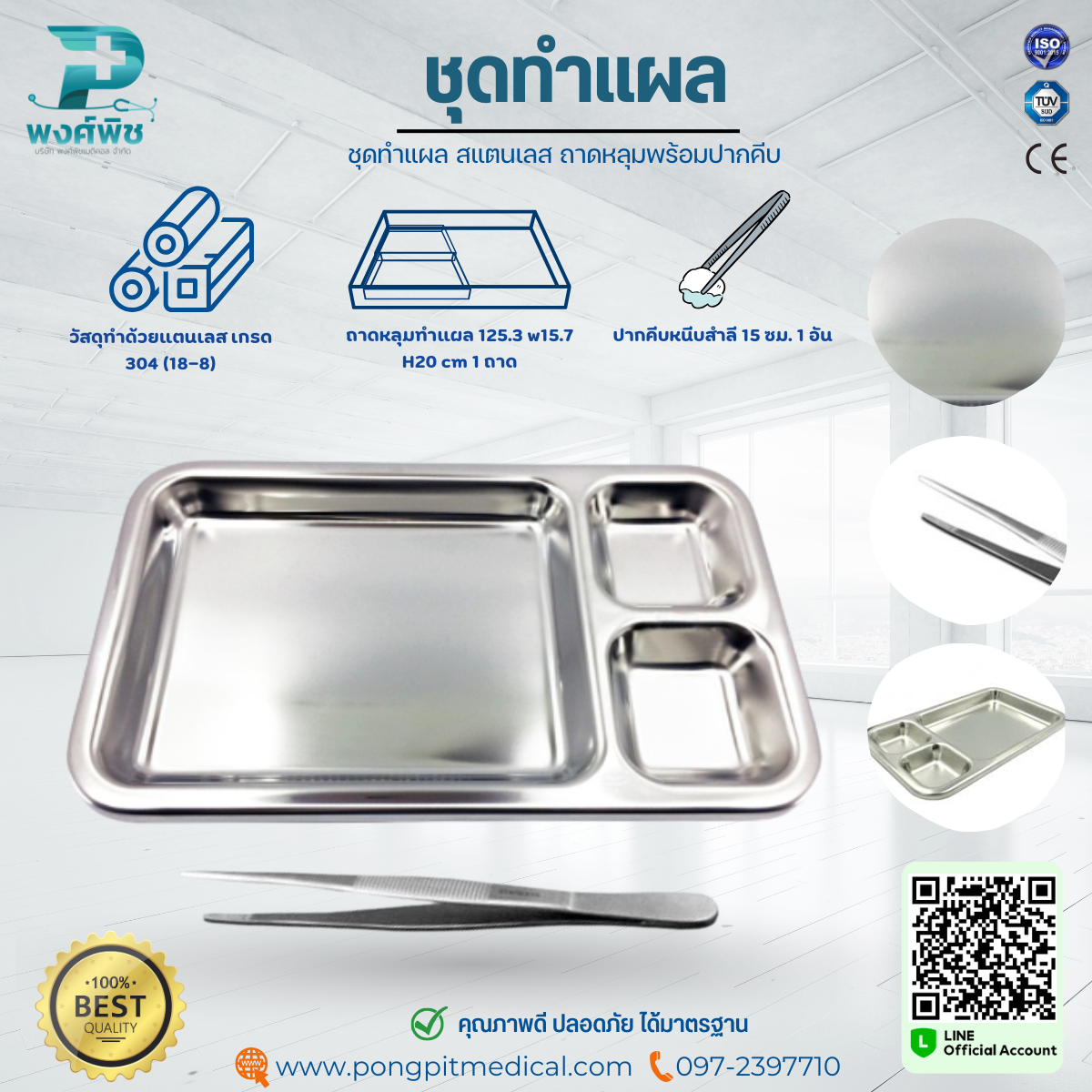 ชุดทำแผล สแตนเลส ถาดหลุมพร้อมปากคีบ วัสดุทำด้วยแตนเลส เกรด 304 (18-8)