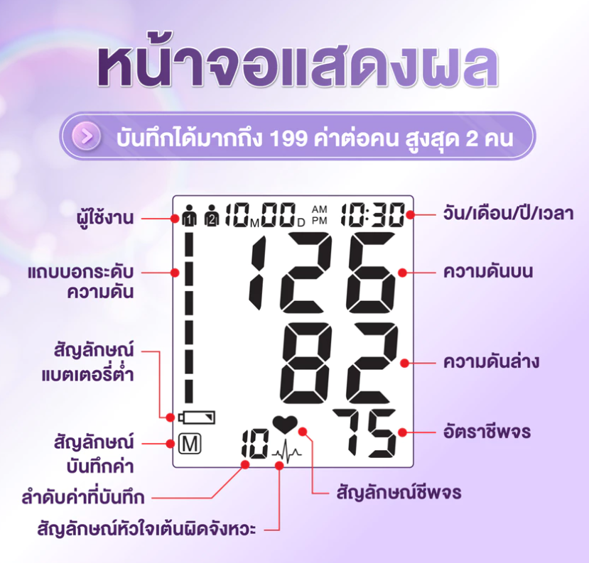 - แนะนำขั้นตอนการใช้งาน / แจ้งผลการวัดความดัน /แจ้งเตือนความผิดปกติ