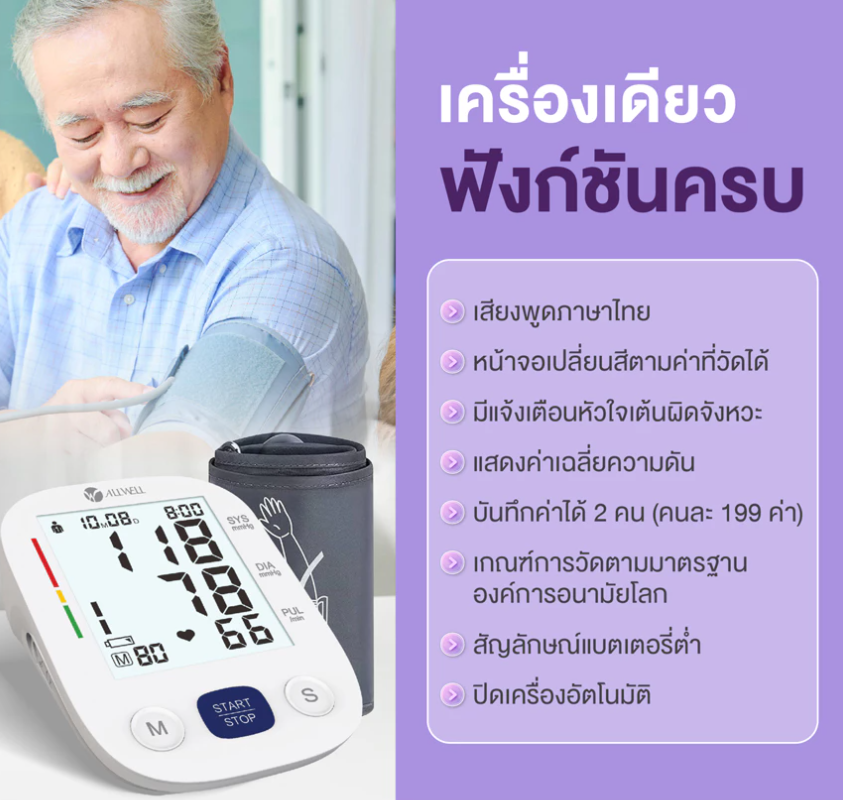 เครื่องวัดความดัน หน้าจอสี เสียงไทย รุ่น SmartBP Care Blood Pressure Monitor หน้าจอเปลี่ยนสีตามความดันโลหิตที่วัดได้ ระบบเสียงภาษาไทย