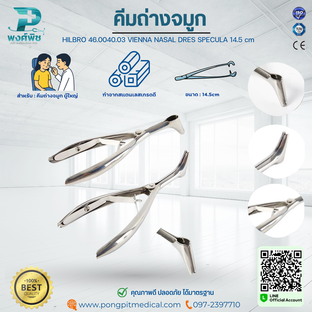 คีมถ่างจมูก ผู้ใหญ่ ใช้สำหรับทางการแพทย์ HILBRO 46.0040.03 VIENNA NASAL DRES SPECULA 14.5 cm