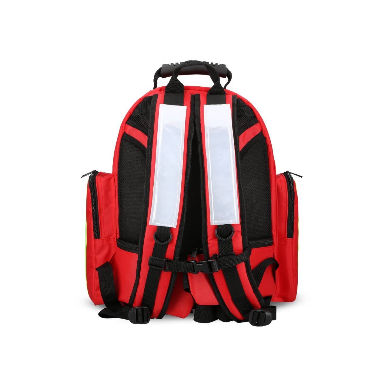 ผ้าคุณภาพสูง ทนทานต่อการใช้งาน กันแดด กันน้ำกระเซ็น กันกระแทก และสามารถซักได้ มีเครื่องหมายกากบาทสีขาวด้านหน้า เป็นสัญลักษณ์ชุดปฐมพยาบาล