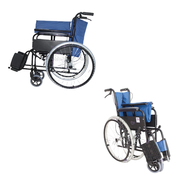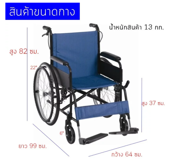 ลแชร์ รถเข็นผู้ป่วย อลูมิเนียมอัลลอยด์ พับได้ เบาะผ้าสีฟ้า Aluminum Wheelchair , Foldable Wheelchai ฐาน X-Bar 2 ชั้น ใต้เก้าอี้ เพิ่มความแข็งแรงให้กับเก้าอี้