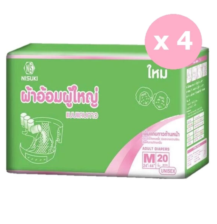 Nisuki ผ้าอ้อมผู้ใหญ่ แบบแถบกาว ยกลัง (1 ลัง บรรจุ 80 ชิ้น) Adult Diapers (1 Carton)