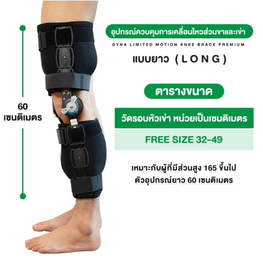 อุปกรณ์ควบคุมการเคลื่อนไหวส่วนขาและเข่า / Limited Motion Knee Brace Premiume แบบยาว ช่วยควบคุมการเคลื่อนไหวส่วนขาและเข่า